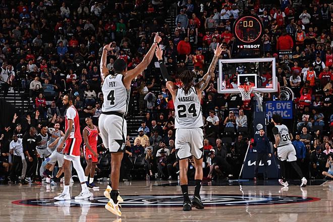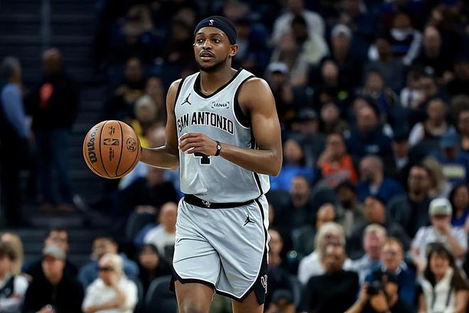 本场比赛中,马刺的先发控卫达隆-福克斯(De'Aaron Fox)的表现算得上是令人刮目相看。福克斯全场出场29分30秒,投篮13中9,三分线外4中1,罚球4中3,得到了全队最高分22分外加8篮板5助攻3抢断的数据,还有3次失误和4次犯规,正负值更是达到了全场最高的+24。福克斯在进攻端展现出了自己全面的得分能力,他有着超强的突破能力和终结能力,在中远距离投篮方面也算是具备一定的把握,在传球和组织方面也起到了一定的作用,而且他在防守端也是展现出了自己相当不错的防守能力。事实上,在上半场比赛中,福克斯就通过各种方式拿下了18分,帮助球队建立起了巨大的领先优势。到了下半场比赛,由于比赛悬念早早失去,福克斯的出场时间并不多,而且他也没有进行更多的出手,这也是他的数据看起来还是比较一般的原因。不过福克斯的状态有目共睹,+24的正负值也能够说明他对于比赛的影响力有多高。